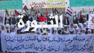 نظمت مدرسة الوحدة الاساسية الثانوية للبنات في مدينة البيضاء، اليوم، وقفة احتجاجية استمرارا لدعم غزة وتنديدا بجرائم القتل والتجويع التي يرتكبها الكيان الصهيوني بقطاع غـزة، ودعما وإسنادا للقضية الفلسطينية والمجاهدين في غزة وتأييدا للقوات المسلحة اليمنية.