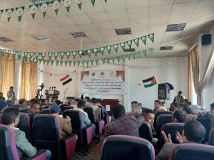 واشار إلى أن مواجهة العدوان وإفشال المؤامرات الموجهة ضد الوطن والأمة والوقوف إلى جانب الشعب الفلسطيني في قطاع غزة .