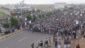 وجددّت الجماهير التفويض لقائد الثورة السيد عبدالملك بدر الدين الحوثي لاتخاذ خيارات الردع للعدو الذي يرتكب جرائم الإبادة والتجويع والتهجير القسري والتدمير الشامل وقتل النازحين في غزة.. مؤكدين أنه مهما بلغ إجرام العدوان الصهيوني على الشعب اليمني واستهدافه للمدنيين والموانئ فلن يثنيهم ذلك عن نصرة غزة وإسنادها.