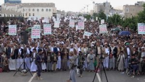وهتفت الجماهير بشعارات مناهضة للعدو الصهيوني الأمريكي ومن يقف معهم أو يدعمهم ويطبع معهم.. مشيرة إلى أن من يحاول أن يحمي ملاحة العدو الصهيوني سيكون عدوا للشعب اليمني وسيتم استهدافه وإلحاق الهزيمة به.