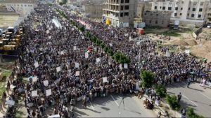 وأوضح بيان صادر عن مسيرات عمران، أنه “استشعاراً لمسؤوليته الدينية والإنسانية والأخلاقية، يستمر الشعب اليمني في خروجه الأسبوعي المليوني جهاداً في سبيل لله وابتغاء لمرضاته، وثباتاً راسخاً في موقفنا المحق والمشرف المساند للشعب الفلسطيني المسلم المظلوم”.