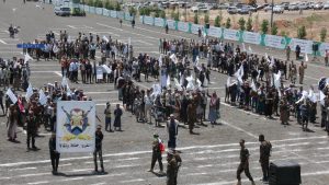 ورفع المشاركون في العرض العلم الوطني، والشعارات المعبرة عن الحرية والعزة والكرامة، التي جاءت ثمرة لهذه الثورة المجيدة التي غيرت مسار التاريخ اليمني، وأسقطت الوصاية الخارجية، وأعادت للأمة هويتها الإيمانية الأصيلة.