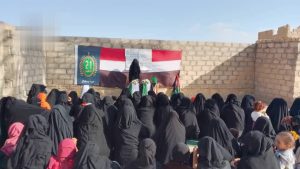 ورفعت المشاركات في الوقفات في الفيض ومعيمرة بمديرية المتون والمبنى بالزاهر والمصلاب بمديرية المطمة والخلق، لافتات وشعارات مؤكدة على التمسك بمبادئ وأهداف الثورة، واستمرار دعم صمود الشعب الفلسطيني، ومنددة بالجرائم التي يرتكبها الكيان الصهيوني بحق المدنيين في غزة بدعم ومساندة أمريكية وأوروبية.