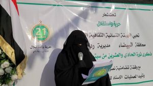 نظمت الهيئة النسائية الثقافية في محافظة البيضاء اليوم فعالية بمدينة البيضاء مركز عاصمة المحافظة وأخرى بمدينة رداع احتفالًا بالعيد الحادي عشر لثورة 21 سبتمبر المجيدة،التي مثّلت محطة فاصلة في تاريخ اليمن الحديث،واستعادت فيها الإرادة الشعبية قرارها الوطني الحر.