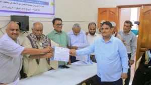 وفي الختام، بحضور مديرو مستشفى دار السلام للصحة النفسية الدكتور عبدالكريم حسن النجدي، ومديرية الحوك جماعي سالم، وإدارة تنمية المرأة مريم العطاس والجمعيات، وأمين محلي مديرية الميناء حسن رسمي، جرى تسليم المشاركين شهادات المشاركة.