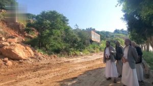 تفقد محافظ المحويت، حنين قطينة، اليوم، سير العمل في مشروع بناء جدار ساند لحماية منزل المواطن خالد العقبي، الكائن في الخط الدائري بمدينة المحويت.
