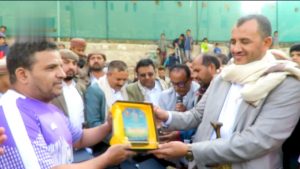 سلّم مكتب الشباب والرياضة في محافظة عمران اليوم، ذوي الاحتياجات الخاصة من المعاقين والصم والبكم بالمحافظة، أدوات ومستلزمات رياضية.
