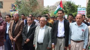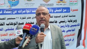 وفي المسيرة أكد رئيس الجامعة الاستمرار في إسناد غزة كواجب ديني وأخلاقي مهما عملت القوى الإرهابية الأمريكية الصهيونية السعودية الإماراتية وكل المطبعين معهم.