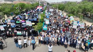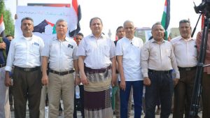 ورفع المشاركون في المسيرة، التي تقدمها رئيس جامعة الحديدة الدكتور محمد الأهدل، ومسؤول قطاع التعليم الفني بالمحافظة حسن عبدالباري، علمي اليمن وفلسطين، مرددين هتافات النصر لفلسطين، والتنديد باستمرار العدوان الصهيوني على قطاع غزة، وارتكاب جرائم الإبادة بحق أبناء غزة وكل فلسطين المحتلة ومنع دخول المساعدات الغذائية والدوائية من المعابر.