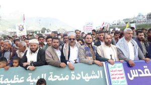 إلى ذلك شهدت مديريات المربع الشمالي “يريم، السدة، النادرة، والرضمة” 35 مسيرة حاشدة، تقدّمها قيادات المديريات الأربع، تنديدا بالصمت الدولي والدعم الأمريكي للمجازر الصهيونية ضد الأشقاء في قطاع غزة.