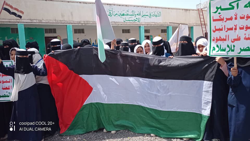وفي الوقفات،التي شارك فيها مدير عام مديرية مدينة البيضاء الشيخ أحمد أبوبكر الرصاص ومسؤول التعبئة العامة بمدينة البيضاء طة شمال ومدير مكتب التربية والتعليم بمدينة البيضاء محمد عمر الحارثي،مديرو ومديرات ومعلمو ومعلمات المدارس الحكومية والأهلية الخاصة بمدينة البيضاء،رفع الطلاب العلَمَين اليمني والفلسطيني،وصور الشهيد السيد حسن نصر الله،وشهداء قادة محور المقاومة،وشعارات الوفاء والنصرة لأبناء غزة وفلسطين.