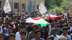 نظم ملتقى الطالب الجامعي بالمعهد الوطني للعلوم الإدارية وجامعة تعز بالحوبان، اليوم، مسيرة طلابية تضامنًا مع غزة.