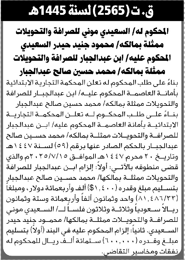 تعلن المحكمة التجارية بالأمانة عن الحكم الصادر للمحكوم له السعيدي موني للصرافة إعلاناتمحاكم On أكتوبر 5, 2025 Share Share FacebookTwitterWhatsAppTelegramGoogle+البريد الإلكترونيPrint