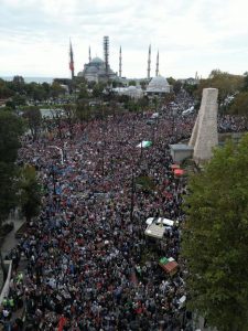 واحتشد المشاركون في منطقة السلطان أحمد رافعين الأعلام الفلسطينية. كذلك، خرجت تظاهرة داعمة لغزة في منطقة إيلازيغ، شرق تركيا، حيث ألقى الخبير في الشؤون الفلسطينية هاني الدالي كلمة فصائل المقاومة الفلسطينية.