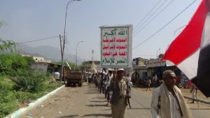 وفي مديرية الزهرة، نظّم خريجو دورة “طوفان الأقصى” من أبناء عزلة الوادي وعددهم 300 متخرج مسيرا شعبيا، هتف المشاركون فيه بشعار البراءة من أعداء الله والموت لأمريكا واسرائيل.