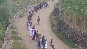 نُظمت بعزلة الغربي الأعلى بمديرية جبل المحويت، اليوم، وقفة تضامنية ومسيراً راجلاً لخريجي دورة “طوفان الأقصى”، بمناسبة الذكرى الثانية للسابع من أكتوبر.