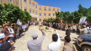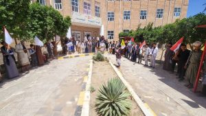 نظمت كليات في جامعة البيضاء اليوم وقفة طلابية حاشدة إحياءً للذكرى السنوية الثانية لإنطلاق معركة “طوفان الأقصى”،تحت شعار “ثباتا مع غزة والقضية الفلسطينية..ورفضاً لأي مؤامرة صهيوأمريكية”.