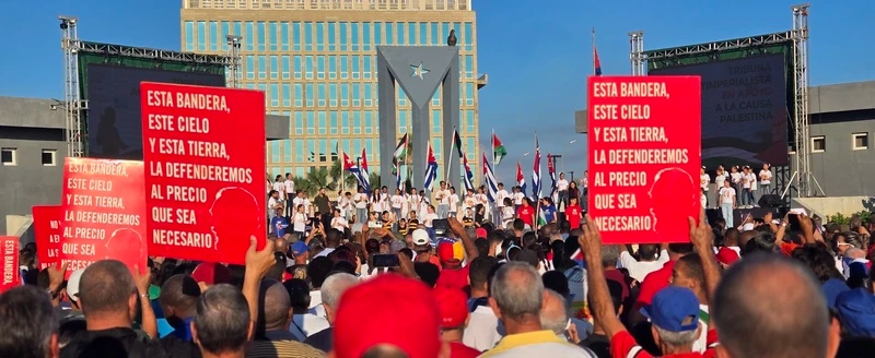 وحسب وكالة سبوتنيك قال رئيس الوزراء : “استقبلنا الفجر مع أكثر من 100 ألف من سكان العاصمة في منبر مناهضة الإمبريالية، الموقع الرمزي للعديد من المعارك، لنؤكد دعمنا الثابت للشعب الفلسطيني. بعد عامين من تصاعد العنف بلا حدود، تطالب كوبا بإنهاء الإبادة الجماعية”.
