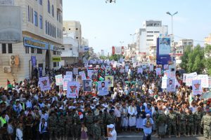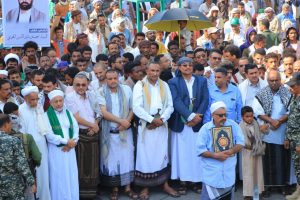وخلال المسيرات التي تقدمها محافظ الحديدة اللواء عبدالله عبدة عطيفي، والقائم بأعمال وزير الكهرباء والطاقة والمياه عادل بادر ، والقائم بأعمال وزير التجارة والصناعة والاستثمار سام البشيري ، ووكيل أول المحافظة أحمد مهدي البشري وأمين العاصمة حمود عبادي ، والوكيلين محمد سليمان حليصي وعلي الكباري، ورئيس مؤسسة الأسمنت، يحيى عطيفة، وقائد الدفاع الساحلي اللواء محمد القادري، وعدد من العلماء والقيادات والشخصيات الاجتماعية.