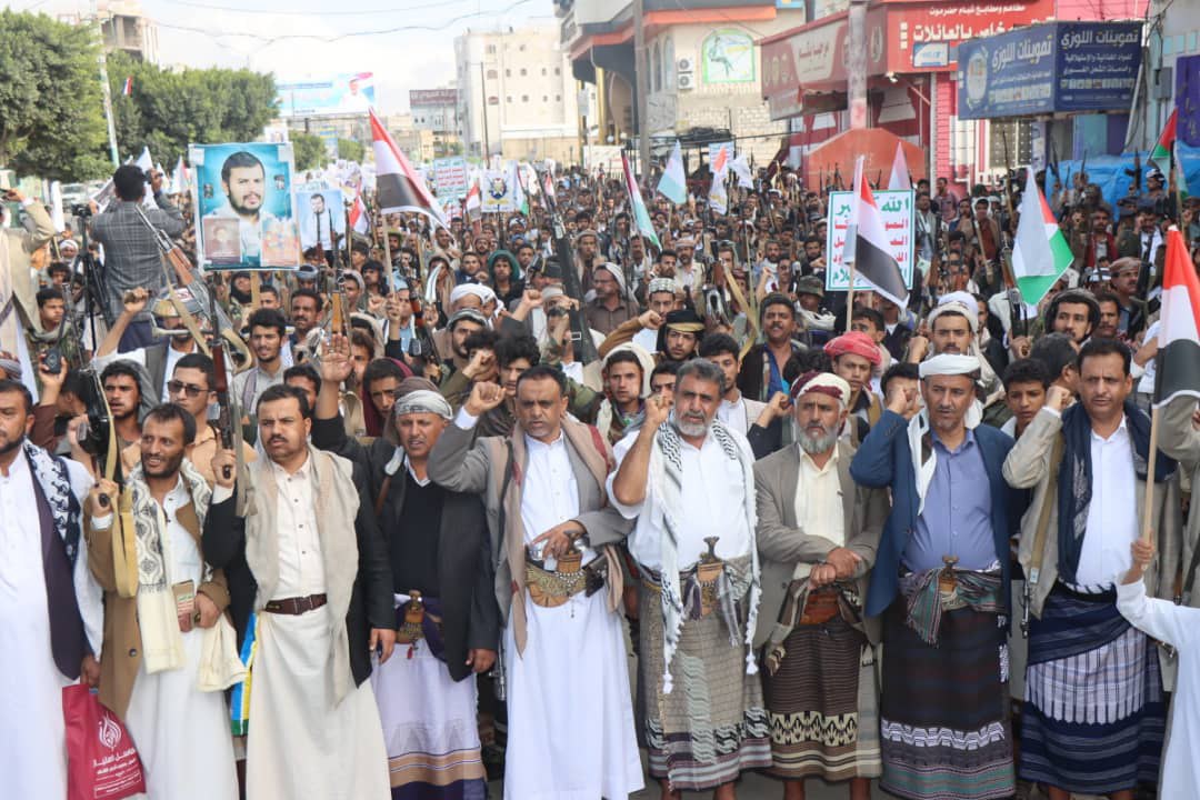 ورفع المشاركون، الأعلام اليمنية والفلسطينية مرددين شعارات وهتافات تعبر عن التضامن مع الشعب الفلسطيني في غزة، وتؤكد على الثبات والصمود والإسناد لرجال الله في غزة، موضحة أن الدعم مستمر استناداً إلى القيم القرآنية والواجب الديني، في إطار المشاركة الفاعلة مع الأشقاء الفلسطينيين في مواجهة العدوان الصهيوني.