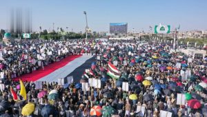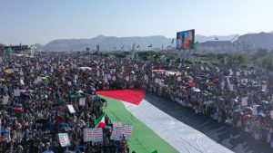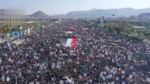 شهدت العاصمة صنعاء اليوم، طوفاناً بشرياً هادراً غير مسبوق في مليونية “طوفان الأقصى.. عامان من الجهاد والتضحية حتى النصر”، مباركة للشعب الفلسطيني ومجاهديه، وتتويجاً لعامين من الاحتشاد الجهادي المشرف في مساندة أبناء غزة وفلسطين.