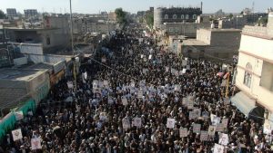 وردد المشاركون في المسيرات، بحضور قيادات محلية، وتنفيذية، وتعبوية، هتافات غاضبة ومنددة بجرائم العدو الصهيوني بحق أبناء غزة، وسط صمت دولي وأممي مخزٍ، وتواطؤ من قبل الأنظمة المطبّعة التي تخلت عن واجبها الإنساني والديني تجاه الشعب الفلسطيني المظلوم.
