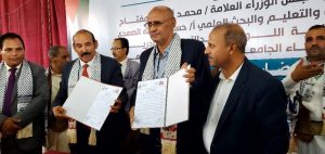 حضر التوقيع نائب رئيس الجامعة للشؤون الأكاديمية الدكتور حفظ الله ناصر ونائب رئيس الجامعة للدراسات العليا الدكتور حميد الجبر ونائب رئيس الجامعة لشؤون الطلاب الدكتور محمد الآنسي وأمين عام الجامعة محمد السعدي وعدد من الكادرين الأكاديمي والإداري بالجامعة.