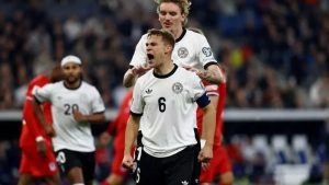 وفي مباراة أخرى، سجل جوشوا كيميش هدفين ليقود ألمانيا للفوز بنتيجة 4-صفر على ضيفتها لوكسمبورغ، التي أنهت المباراة بعشرة لاعبين، لتتقدم إلى صدارة المجموعة الأولى في تصفيات كأس العالم لكرة القدم 2026.