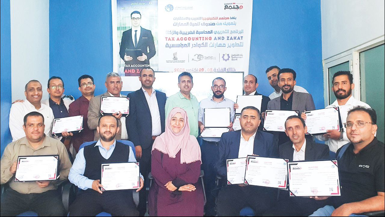 هدف البرنامج بتمويل وإشراف من صندوق تنمية المهارات وتنفيذ مجتمع التكنولوجيا للتدريب والاستشارات في 5 أيام إلى تأهيل ١٦ مشاركا، في فهم وإعداد الإقرارات الضريبية والزكوية بدقة ووفقاً للأنظمة والتشريعات المعمول بها في الجمهورية اليمنية.