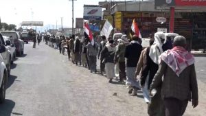 نظمت التعبئة العامة بمديرية سنحان وبني بهلول في محافظة صنعاء، اليوم مسيراً راجلاً ووقفة، لقوات التعبئة بعزلة الغربي، بالذكرى الثانية لعملية طوفان الأقصى وتضامنًا مع الشعب الفلسطيني ومقاومته الباسلة.