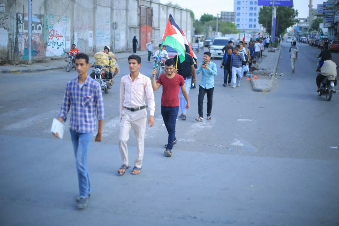ورفع المشاركون في المسير، الذي تقدمه رئيس الجامعة الدكتور محمد أحمد الاهدل، العلمين اليمني والفلسطيني، مرددين الشعارات والهتافات المعبرة عن تلاحم الشعب اليمني وثبات موقفه المساند للشعب الفلسطيني ومقاومته الباسلة، التي توجت عامين من المواجهة بالنصر على الكيان الغاصب وكشف زيف المطبعين والخانعين.