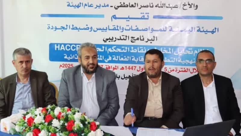 بدأ اليوم في صنعاء، البرنامج التدريبي لنظام تحليل المخاطر ونقاط التحكم الحرجة – منهجية التطبيق والرقابة الفعالة في المنشآت الغذائية، الذي ينظمه مركز التدريب والتأهيل بالهيئة اليمنية للمواصفات والمقاييس وضبط الجودة.