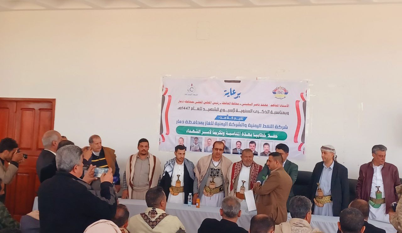 كرمت شركة النفط اليمنية ومنشآة الغاز في محافظة ذمار، اليوم 8 من أسر الشهداء بمناسبة الذكرى السنوية للشهيد 1447هـ.