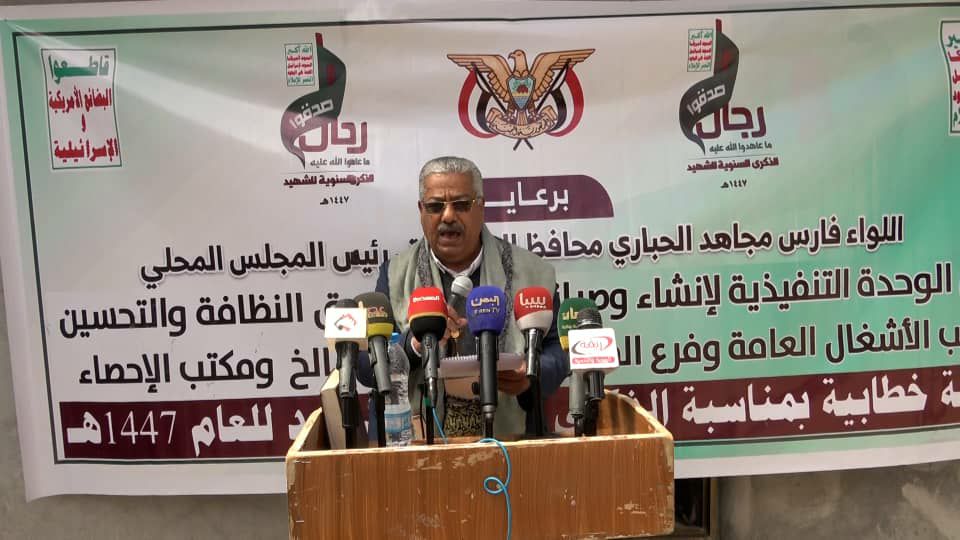 نظمت الوحدة التنفيذية لانشاء وصيانة وتطوير الطرق والاماكن العامة وصندوق النظافة والتحسين ومكاتب الاشغال العامة والطرق والاحصاء والمسالخ بمحافظة ريمة اليوم فعالية خطابية بمناسبة الذكري السنوية للشهيد للعام 1447 ه تحت شعار” وفاء لدماء الشهداء.. اعدادنا مستمر وجاهزيتنا عالية”.