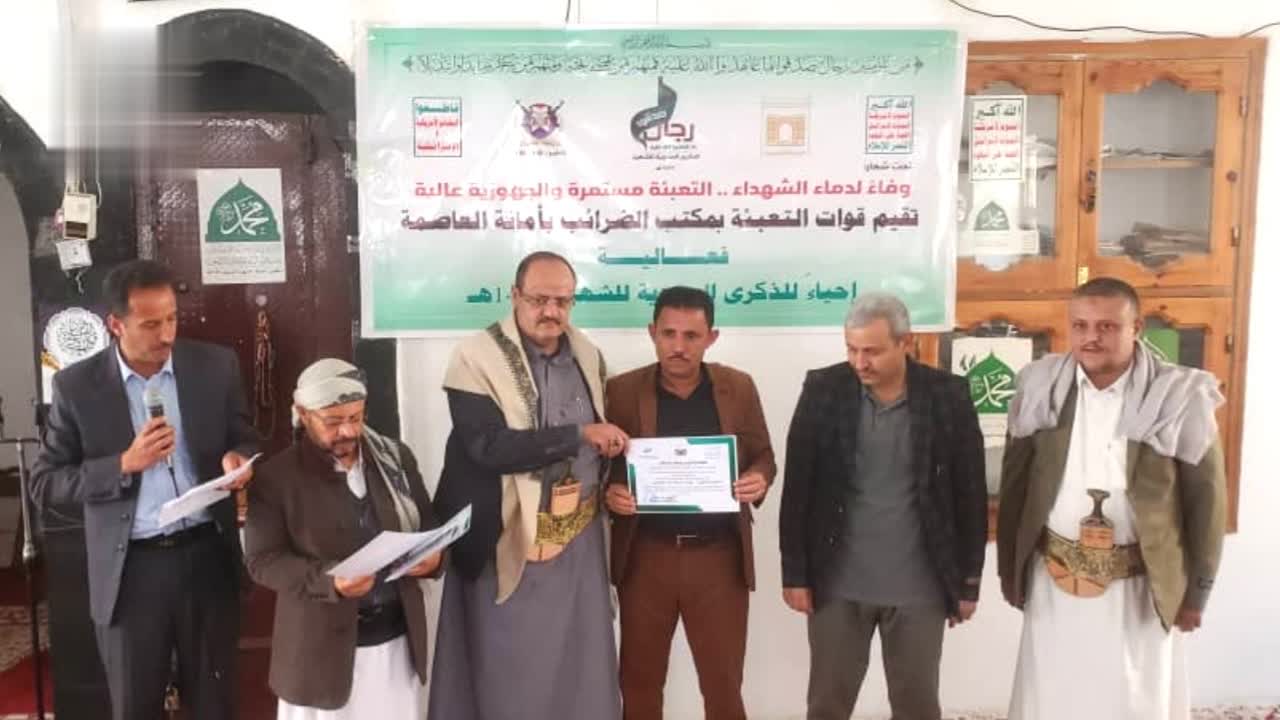وفي ختام الفعالية، كرّم مدير مكتب الضرائب بالأمانة أسر الشهداء من موظفي المكتب.