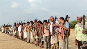 شهدت مديرية الضحي بمحافظة الحديدة اليوم، وقفة قبلية مسلحة وفاءً للشهداء وتأكيداً على الجاهزية لمواجهة قوى الهيمنة والاستكبار العالمي بقيادة أمريكا وبريطانيا والكيان الصهيوني.