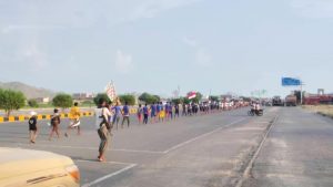 نظمت التعبئة العامة في مديرية عبس محافظة حجة مسيرً لخريجي الدورات العسكرية المفتوحة” طوفان الأقصى”، في عزلة الوسط.