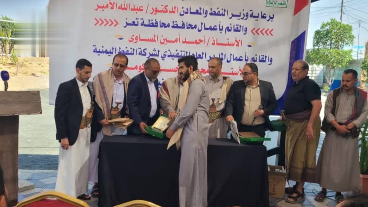 تخللت الفعالية بحضور نواب مدراء فرع شركة النفط اليمنية بتعز وموظفي الفرع، تكريم أسر شهداء فرع الشركة بالمحافظة.