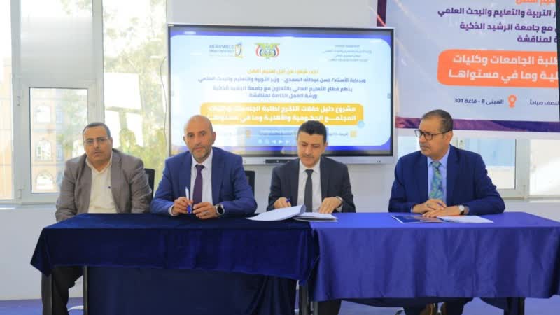 نظم قطاع التعليم العالي بالتعاون مع جامعة الرشيد الذكية اليوم، ورشة عمل لمناقشة وإثراء مشروع دليل احتفالات التخرج لطلبة الجامعات وكليات المجتمع الحكومية والأهلية وما في مستواها.