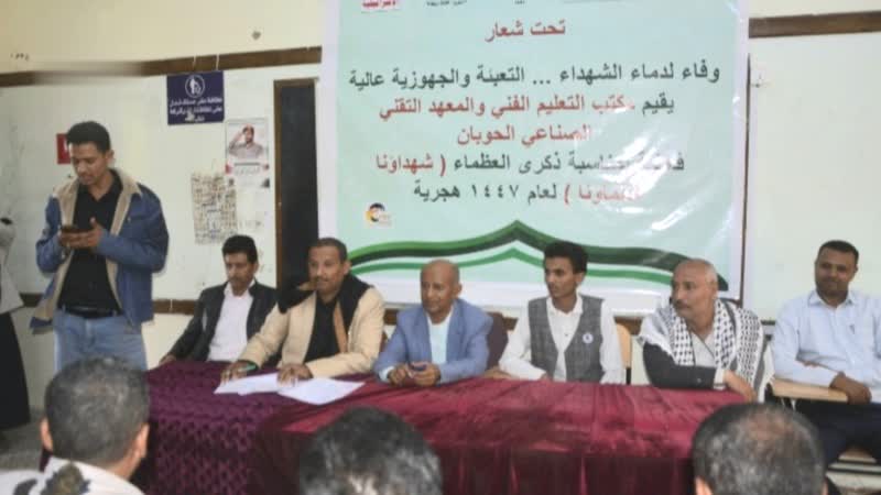 نظم قطاع التعليم الفني والتدريب المهني والمعهد التقني الصناعي بمحافظة تعز اليوم، فعالية خطابية بالذكرى السنوية للشهيد تحت شعار “وفاءً لدماء الشهداء.. التعبئة مستمرة والجهوزية عالية”.