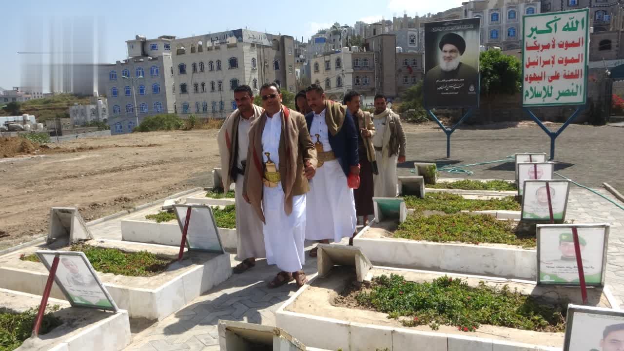 إلى ذلك زارت قيادة ومنتسبو مكتب الضرائب روضة الشهداء في مديرية الظهار بمركز المحافظة وقرأوا الفاتحة على أرواحهم.. منوهين بما سطره الشهداء من ملاحم بطولية في مختلف الجبهات.