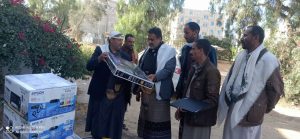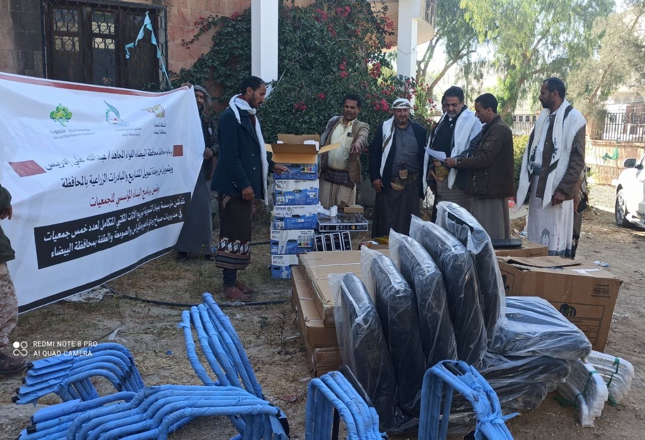 سلّم القطاع الزراعي في محافظة البيضاء ومؤسسة بنيان التنموية، اليوم، أثاثا مكتبيا متكاملا للجمعيات التعاونية الزراعية في مديريات صباح وذي ناعم ومكيراس والصومعة والطفة، بتكلفة خمسة ملايين ريال.