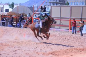 وقال بأن افتتاح منافسات هذه اللعبة التي ترتبط بالخيل والذي ارتبط بتاريخ اليمنيين عبر العصور فهذه الرياضة تساهم في تميز الرجال بالشجاعة والإدارة والعزم .