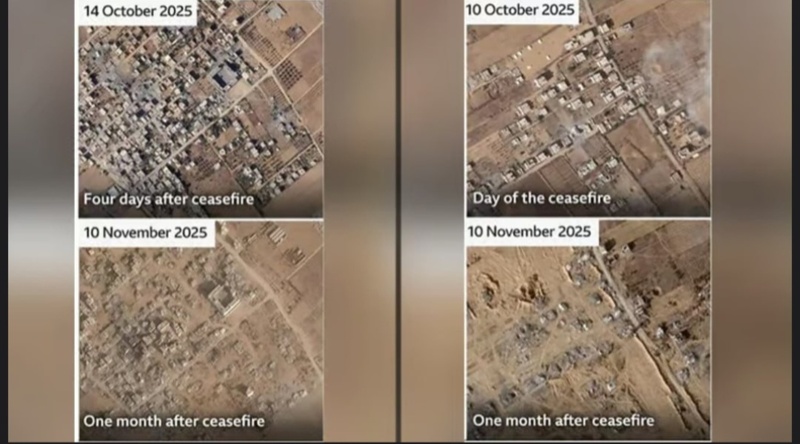 أظهرت صور أقمار صناعية، تدمير جيش العدو الإسرائيلي المئات من المباني في المنطقة التي تخضع لسيطرتها في قطاع غزة، منذ وقف إطلاق النار في 10 أكتوبر الماضي.