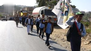 نظم طلاب ثانوية الشهيد طه المداني للمتفوقين بمركز محافظة حجة مسيرا راجلا إلى روضة الشهداء في الصيح بالذكرى السنوية للشهيد 1447هـ.