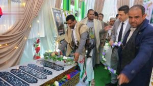 وفي الافتتاح وضع المحافظ عوض ونائب وزير التربية، إكليلا من الزهور على مجسمات أضرحة الشهيد القائد والرئيس الشهيد الصماد، والشهيد السيد حسن نصرالله، وتم قراءة الفاتحة على أرواحهم وكافة شهداء الوطن.