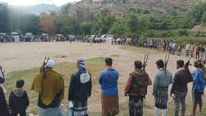 وأعلن المشاركون خلال الوقفة التي شارك فيها مدير المديرية عبد الرحمن العريقي ومسؤول التعبئة ارحب العريقي ومدير الأمن خالد المغربي، ومشايخ وشخصيات اجتماعية.. النفير العام ورفع الجهوزية القتالية، استعداداً لمواجهة العدوان.