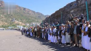 وأعلنت قبائل العدين خلال لقاء قبلي مسلح، بحضور محافظ المحافظة عبدالواحد صلاح، وعضو مجلس الشورى طارق المفتي، ومساعد قائد المنطقة العسكرية الرابعة العميد محمد الخالد، النفير العام، واستمرار أنشطة التعبئة العامة وبرامج التأهيل والتدريب القتالي دون توقف.