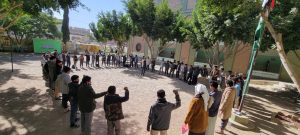 نظّم مجمع العاقل التعليمي للبنين بمدينة البيضاء، اليوم، وقفة طلابية وتربوية بعنوان “موقفنا ثابت والتعبئة مستمرة والجهوزية عالية”، تأكيداً على الاستعداد لمواجهة أي تصعيد ضد اليمن أو غزة.