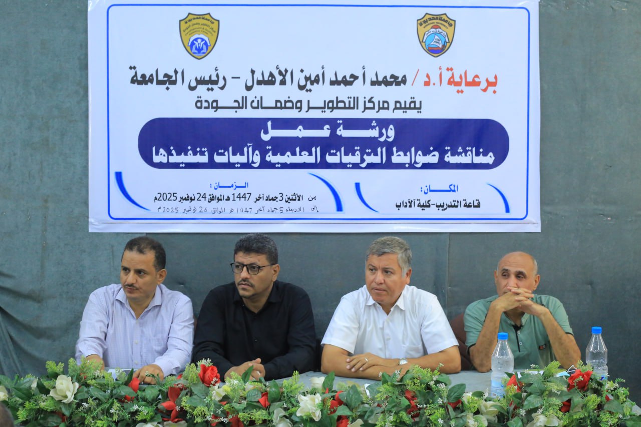 بدأت بجامعة الحديدة اليوم فعاليات ورشة العمل المكرسة لمناقشة ضوابط الترقيات العلمية وآلية تنفيذها، والتي تستمر على مدى يومين؛ لضمان حصول المستحقين من كوادر الجامعة في مختلف الكليات والمراكز على حقوقهم القانونية.